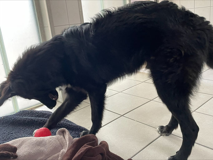 Tilu ist außerdem ein absoluter Wasser-Fan: Ob Hundepool, Bach oder Planschbecken – er springt begeistert ins Wasser, wälzt sich darin und bringt voller Freude Spielzeuge zurück, besonders zuverlässig, wenn ein Leckerli darin versteckt ist.