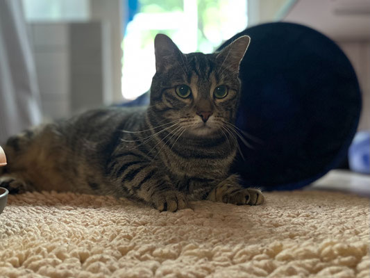 Andere Katzen braucht sie in ihrem neuen Zuhause nicht. Allgemein zeigt sie sich bei uns sonst insgesamt als sehr unkompliziert. Größere Kinder mit etwas Verständnis, wären sicher kein Problem.